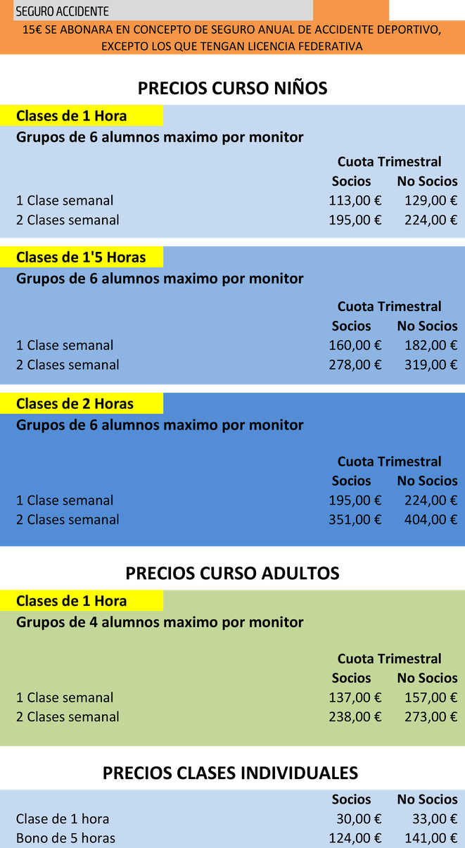 Precios escuela curso 2025/26